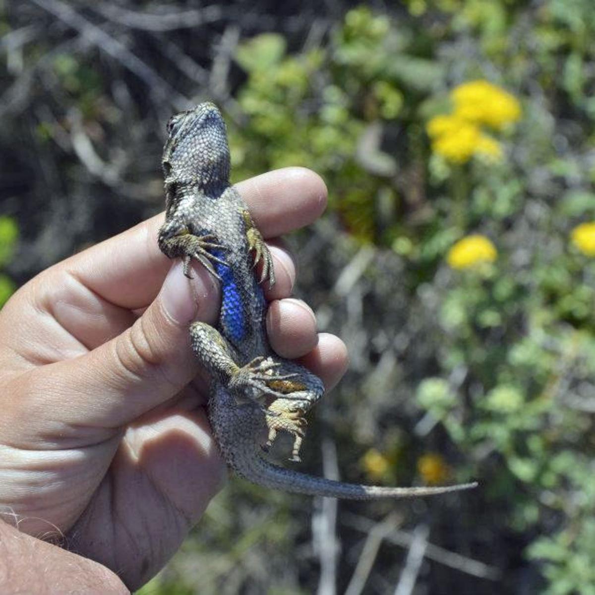 The fence lizard will stay on the opposite side of the predator as per squirrel do. It is a native to California and and it is part of the Sceloporus lizard family. But these western fence lizards are doing something else for us besides insect patol.